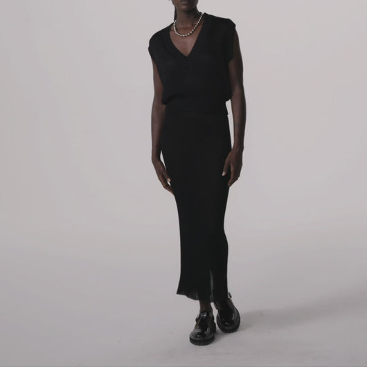 Fits true to size, with a slim, figure-flattering fit. Knitted in our signature viscose, this knit skirt feels smooth and silky against your skin. Intended for an ankle length hem.
