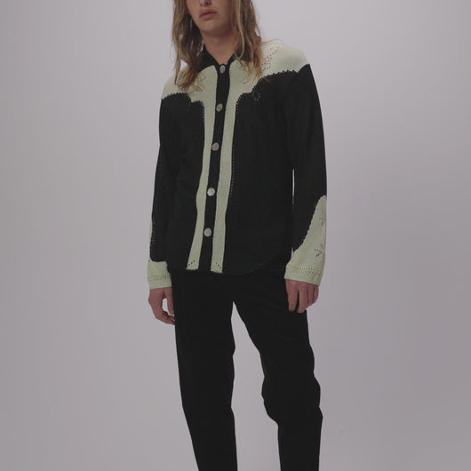 Saddle up in style with our Western Shirt, crafted to embody the timeless charm of a classic cowboy button-down. Featuring a pointed collar and front placket adorned with out iridescent shell buttons. The intricate stitch work draws inspiration from iconic Western patterns and reflects the rich tradition of cowboy culture.